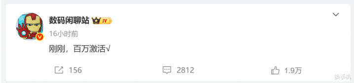 知名博主数码闲聊站则发文表示:“刚刚,百万激活√”。