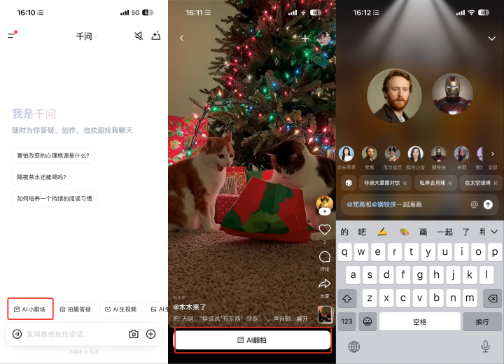 12月16日股票配资的最新消息,阿里千问APP同步上线最新视频生成模型万相2.6,并向所有用户免费开放。基于该模型的核心能力,千问APP上线“AI小剧场”功能,在国内首次实现“角色合拍”玩法,用户可与朋友或名人轻松同框出演AI短片。